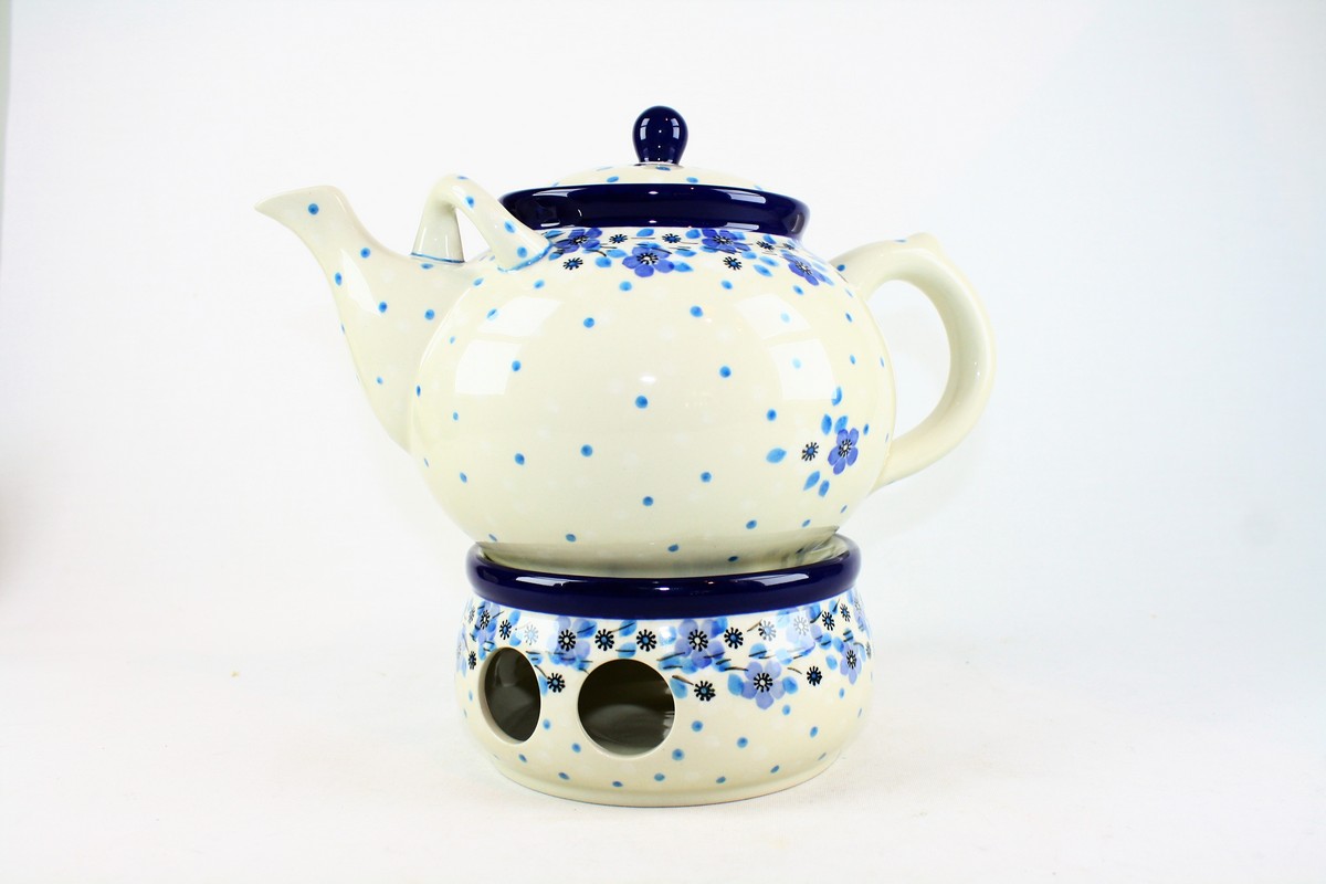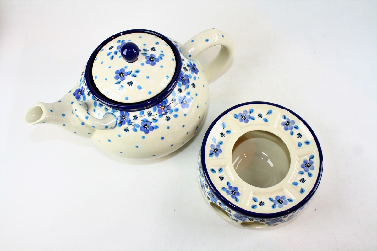 Bunzlau Theepot 1,2L met Theelicht Blue White Love 2328X (set 504 met 060 en 063)